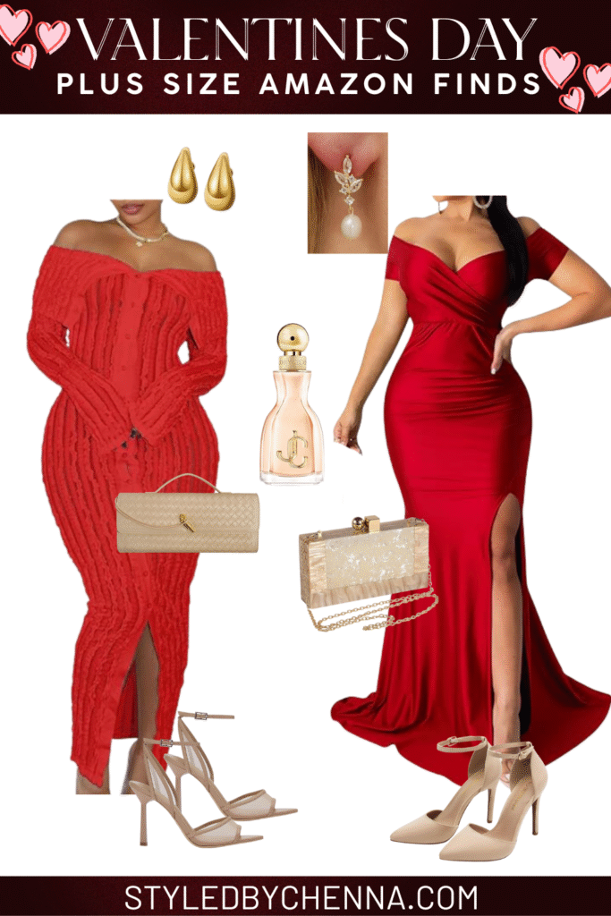 From curve-hugging dresses and flirty wrap silhouettes to soft pink sweaters, chic red tops, and elevated basics, these plus size Valentine’s looks are designed to highlight your shape—not hide it. The best part? Many of these Amazon pieces come in extended sizing and are easy to dress up or down depending on your plans.